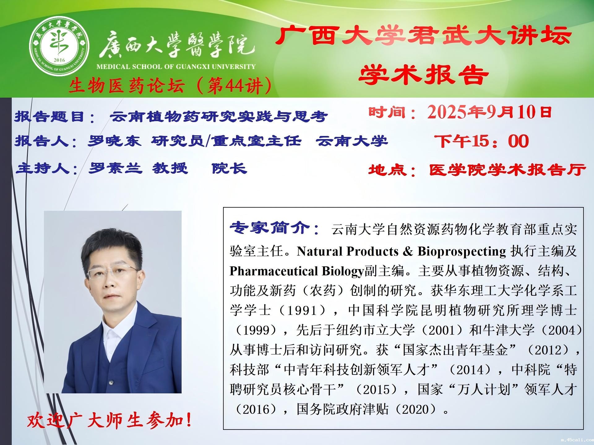 广西大学君武大讲坛之医学院生物医药论坛(第44讲)